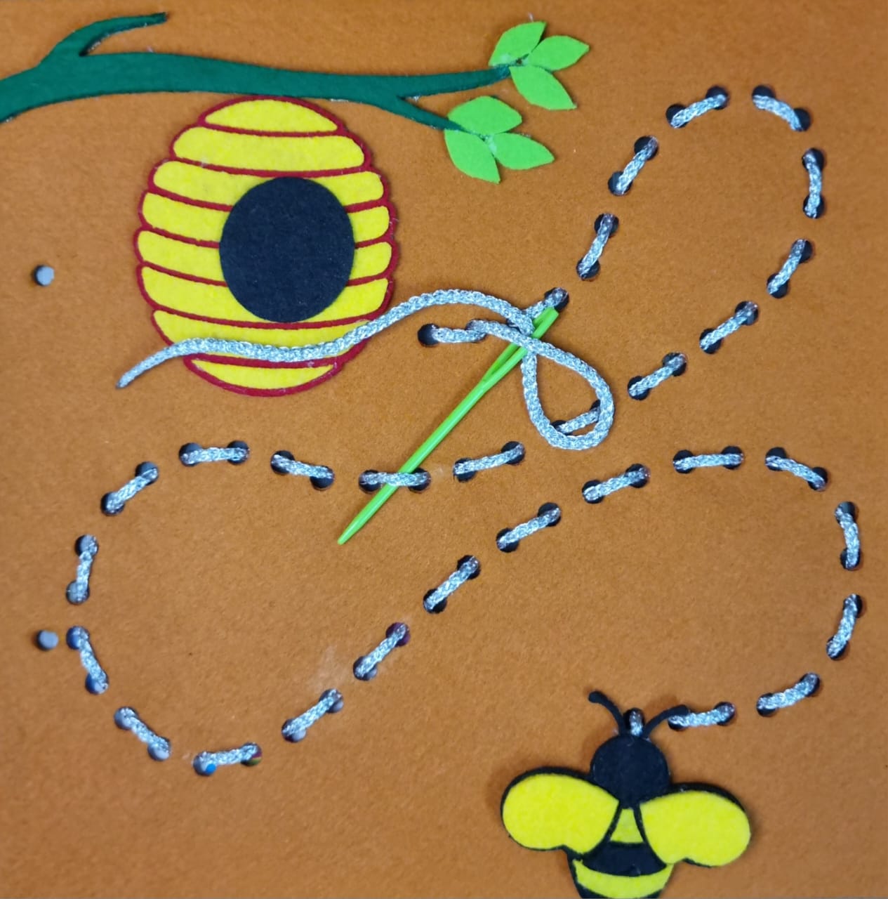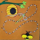 - Interactive Sewing Beehive Activity: Children guide the bee through holes to its beehive, mimicking sewing.
